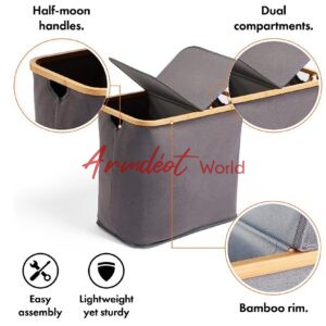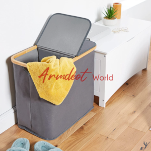 Ideal for bathrooms, bedrooms or utility rooms, the laundry hamper’s neutral grey colourway, premium woven Oxford fabric and bamboo detailing around the rim, will add a luxurious feel to any room.