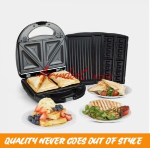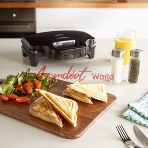 The grilled sandwich maker with automatic temperature control, non-slip feet is perfectly simple to use and indicator lights, to let you know when your toasted snack is ready to eat!