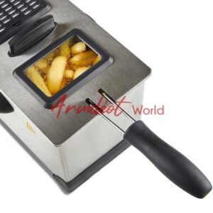 Premium stainless steel frying basket comes complete with a cool touch detachable handle.