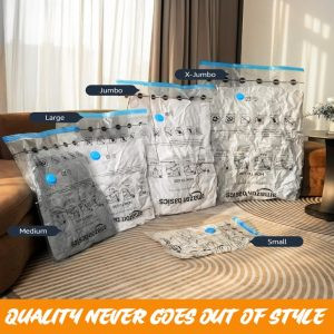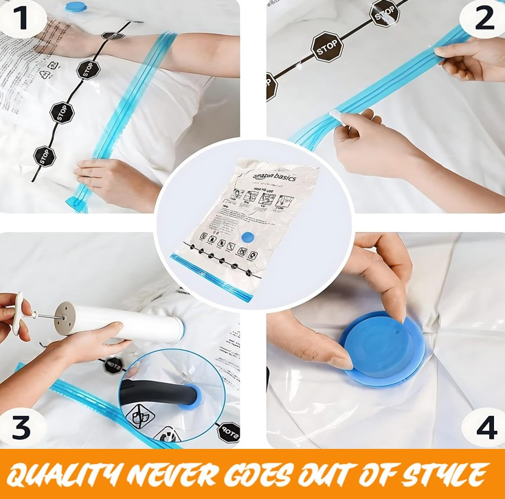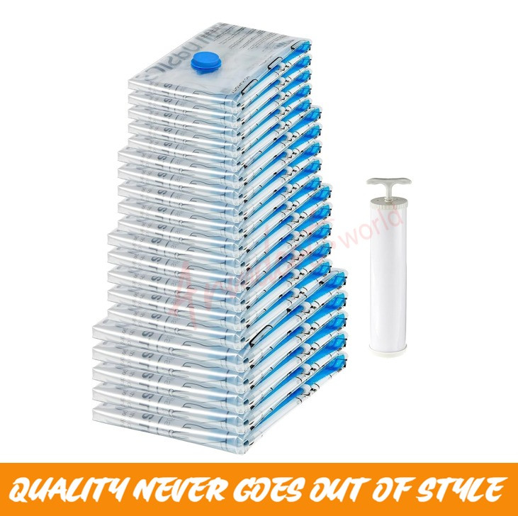 Maximize Storage Space – Compress bulky items and save up to 80% of storage space in wardrobes, closets, cupboards, suitcases, or luggage.