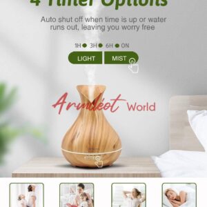 Besides its uses in aromatherapy, this essential oil diffuser also functions as a humidifier. Use it to improve your home’s air and atmosphere quality, cover the smell of pets or smoking, and protect you family from excessively dry air, microorganisms, allergens, dust, and more!