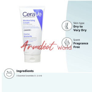 Developed with dermatologists, the rich formula of the CeraVe Moisturising Cream helps to protect the skin’s natural barrier with three essential ceramides and MVE technology to provide daily instant and long-lasting hydration. Hyaluronic Acid helps to retain the skin’s natural moisture.