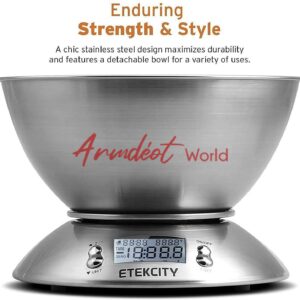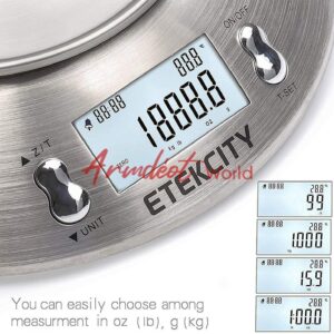 The high precision strain gauge sensors ensure accuracy you add an ingredient to your meals with a low graduation of 1g(0.1oz). Get to the dinner table faster with the included hassle-free tare and auto-zero functions. This scale stands out from the crowd of competition with the included surrounding temperature sensor and alarm timer, giving you freedom to remove clutter from your kitchen counter.