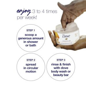 When used as a body scrub, Dove Exfoliating Body Polish gently removes dead skin cells to reveal a new layer of beautiful, radiant skin.