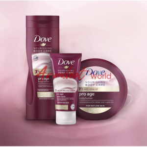 Enriched with NutriDUO, Unique dual-action moisturising complex combines skin natural nutrients and essential oil goodness to nourish the deeper layers of the skin. Dove Nourishing Body Care Pro Age Body Lotion prevents moisture loss from the skins surface, so skin can stay intensely moisturised and soft for 24 hours. With regular use, the quality of skin progressively improves, leaving it radiant on the outside and nourished beneath the surface too.