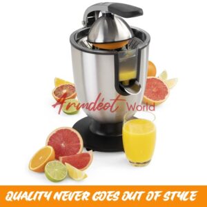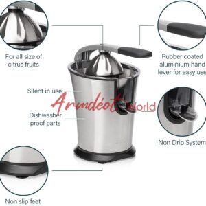 The powerful 160 Watt motor makes sure that all juice is squeezed out of the citrus fruits. Even though the motor has a lot of power, it is very low noise so you can start juicing on Sunday morning without waking up your partner or kids.