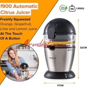 A powerful motor is used in our f900 automatic citrus juicer to ensure you are juicing for years. We’ve teamed the powerful motor up with an all metal spindle so that your oranges, grapefruits, limes and lemons are fully squeezed and the maximum juice is extracted. On the outside, the stainless steel, Triton clear plastic and black casing will look amazing in your kitchen worktop and be an essential daily tool.