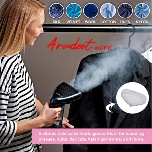 👔 REMOVES WRINKLES FROM ALL CLOTHING AND REFRESHES FURNITURE – Cotton, viscose, satin, nylon, poly cottons, delicate materials like silk, velvet, wool suits, wedding dresses, sequin and saris with included guard to stop the metal plate touching. Freshen soft furnishing, upholstery, curtains, bedding, couch, duvet, mattresses and more around the home.