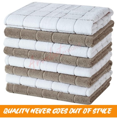 Gryeer 8 x Microfibre Kitchen Towels, Super Absorbent, Soft and Lint Free, 45 x 65 cm, Brown