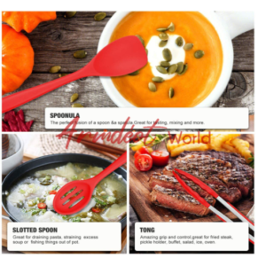 The silicone cooking set is durable to use. They simply won’t discolor, warp, melt or chip like your old plastic kitchen utensils or bamboo kitchen utensils.