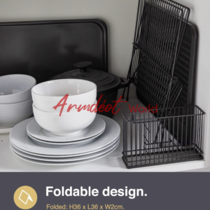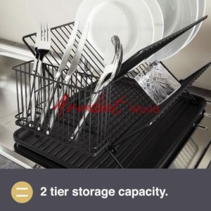 The two-tier design can hold up to 21 large plates with additional space for cutlery, utensils, glasses and bowls.