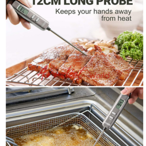 4.7 “Sensitive Probe : The 4.7” (approx. 12 cm) long probe makes it easy to insert into pork and chicken. No more burns when tasting your meat. (Never use the cooking thermometer in a closed oven!)