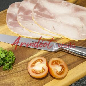Five piece knife set complete with a bread knife, chef knife, slicing knife, utility knife and a paring knife
