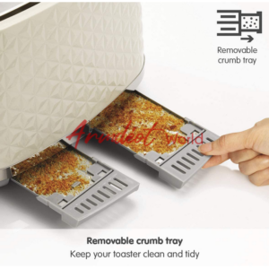 Removable crumb trays to easily clean your toaster.