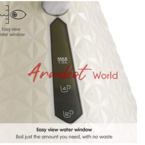 Using the handy easy view water gauge you can control how much you boil, up to 6 cups at a time. With a high powered, 3Kw concealed rapid boil element and removable limescale filter, you can have your drinks clean, clear and fast!