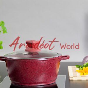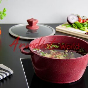 The stylish gold specked marble effect coating gives unprecedented non-stick performance, allowing you to cook without fat in addition to preventing food from sticking. A clear tempered glass lid enables you to keep an eye on your cooking while retaining all of the natural goodness.