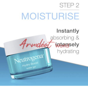 STEP 2 – Neutrogena Hydro Boost Water Gel Moisturiser: a uniquely light and oil-free moisturiser with intense nourishing power that keeps your skin energised and more resilient.