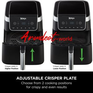 6 COOKING FUNCTIONS: Max Crisp, Air Fry, Roast, Bake, Reheat, Dehydrate. Cook frozen food in minutes with Max Crisp and 240°C temperatures. Adjustable Crisper Plate with 2 cooking positions.