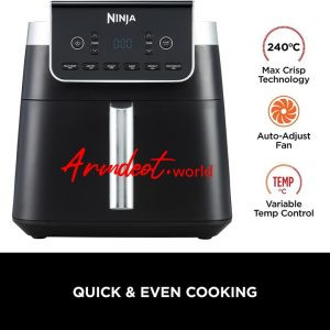 LARGER CAPACITY (vs Ninja AF160). Family-size 6.2L square drawer fits 4 chicken breasts. Perfect for 1-4 people. Cooks up to 50% faster than fan ovens* (*Tested against fish fingers and sausages).