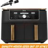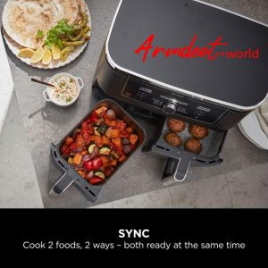 INCLUDES: Ninja Dual Drawer Air Fryer (UK Plug), 2x non-stick dishwasher-safe 4.75L Drawers (9.5L total capacity) & Crisper Plates. Chef-created Recipe Guide. W