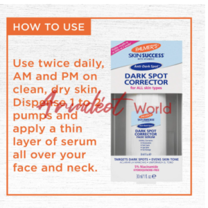 Palmer’s Skin success dark spot Corrector fade serum is concentrated to deliver active ingredients that effectively fade dark spots, age spots, sun damage and discoloration, revealing your brightest, most radiant and uniform complexion.