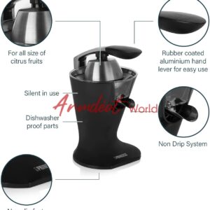 Princess Master Citrus Juicer, universal cone, pulp filter, container with drip stop, instruction manual