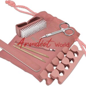 Pedicure Set with 9 accessoriesThe pedicure kit includes 9 accessories in a nice storage pouch: nail brush, nail cleaner, cuticle stick, 2 bamboo cuticle pushers, cuticle scissors, 2 toe separators & emery board |