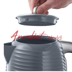 3 KW premium plastic textured design, complemented by sleek chrome accents with lift off lid and an ideal pour spout