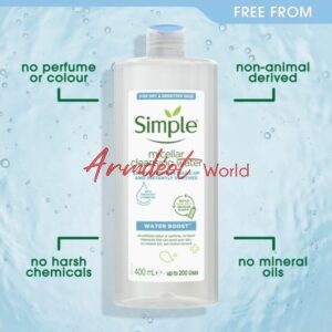 Simple Water Boost Hydrating Micellar Cleansing Water with Prebiotics for Dry & Sensitive Skin (400ml)