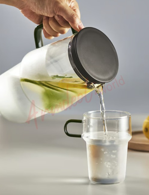 • Built-in strainer holes in the lid allow easy pouring while keeping ice and fruit inside the jug.