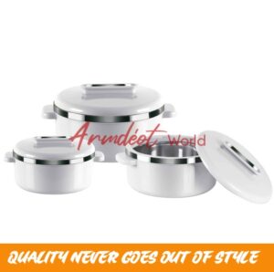 This are double-walled, with a stainless-steel inner surface to keep food hot and fresh-tasting for hours.