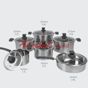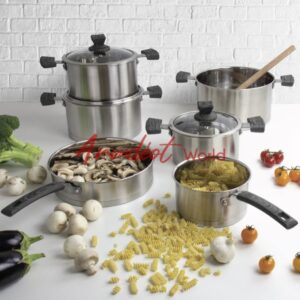 SQ Professional Lustro Touch 6pc Set with wooden handles that will perfectly fit any kitchen. Great Stainless Steel with high quality, Saucepans, Saute Pans and Stockpots of many sizes: Size & Capacity: Saucepan: Ø 16.0cm x W 33.5cm x H 9.0cm / 1.7L Stockpot: Ø 18.0cm x W 31.0cm x H 10.0cm / 2.2L Stockpot: Ø 20.0cm x W 32.5cm x H 11.0cm / 3.2L Stockpot: Ø 22.0cm x W 35.0cm x H 12.0cm / 4.0L Stockpot: Ø 24.0cm x W 37.0cm x H 13.5cm / 5.6L Sauté Pan: Ø 24.0cm x W 42.0cm x H 6.5cm / 2.4L Approx. Net Weight: 10.6kg Material: Stainless Steel