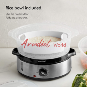 HEALTHY COOKING – 3-tier 800W steamer heats quickly to steam fish, meat and vegetables to healthy and succulent perfection. Includes a bowl accessory for preparing rice and grains