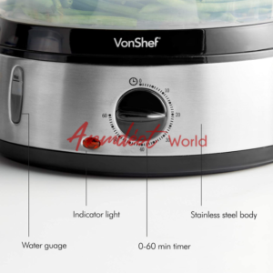 EASY TO USE – side inlets and external level indicator make topping up water supply easy, while the 0-60 minute timer lets you set the perfect cooking time